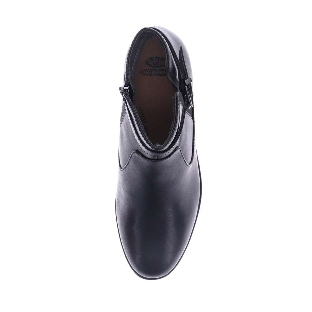 100% genuine leather wedge boot with elastic and strap features for ideal comfort and support.