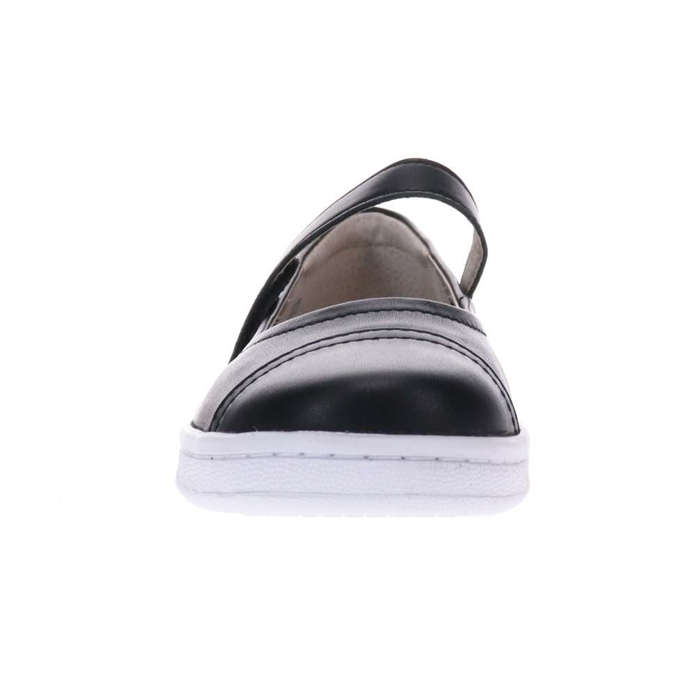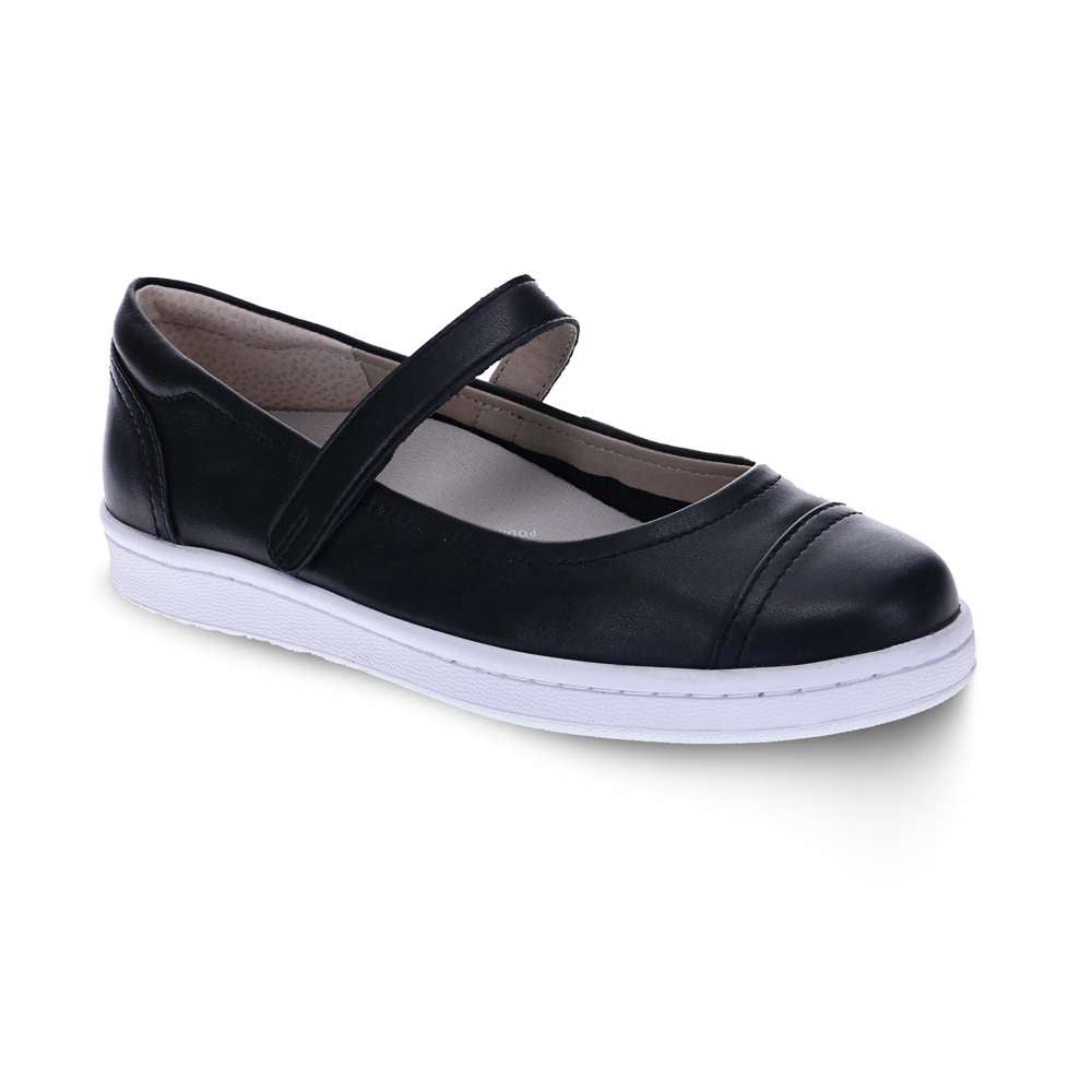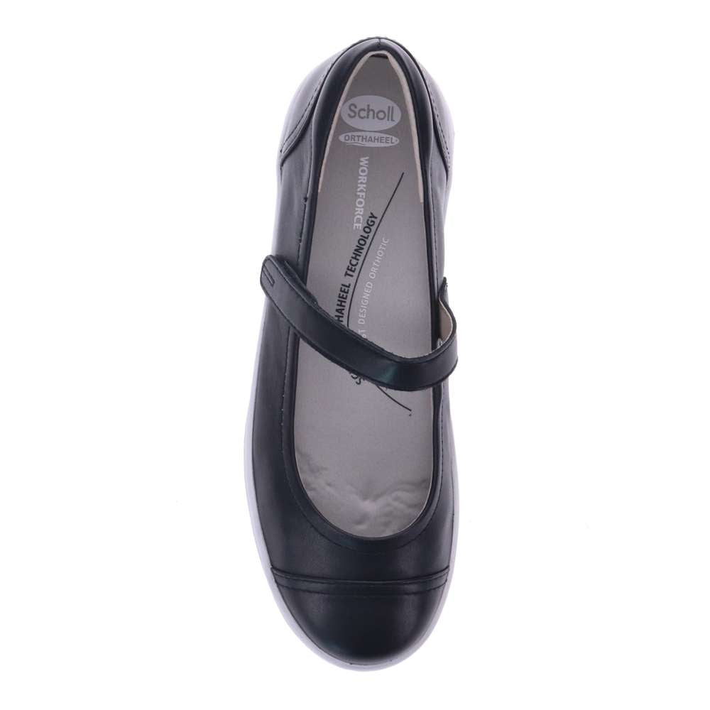 Rhonda is Scholl's next great casual shoe . Great detail in the toe cap and back piece make this rubber bottomed MaryJane the perfect shoe to wear anywhere , anytime . Rhonda can be teamed with a flowy summer dress for work or paired with jeans for a BBQ . This will become your go to shoe for this summer . Soft padding on the back counter make it a dream to wear as it gives you all the support you need . The podiatrist designed Orthaheel footbed ensures your foot gets all the stability and support it needs to get your through the day